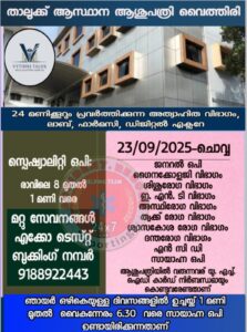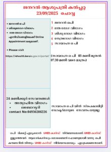 ബത്തേരി, മാനന്തവാടി, കൽപ്പറ്റ, വൈത്തിരി, കോഴിക്കോട് ആശുപത്രികളിലെ ഇന്നത്തെ ( 23.09.2025 – ചൊവ്വ ) പ്രധാന ഒ.പി വിവരങ്ങൾ