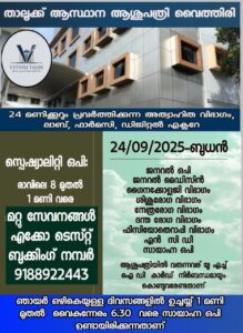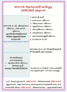 ബത്തേരി, മാനന്തവാടി, കൽപ്പറ്റ, വൈത്തിരി, കോഴിക്കോട് ആശുപത്രികളിലെ ഇന്നത്തെ ( 24.09.2025 – ബുധൻ ) പ്രധാന ഒ.പി വിവരങ്ങൾ