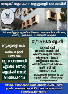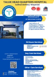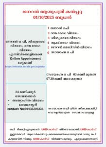 ബത്തേരി, മാനന്തവാടി, കൽപ്പറ്റ, വൈത്തിരി, കോഴിക്കോട് ആശുപത്രികളിലെ നാളത്തെ ( 30.09.2025 – ചൊവ്വ ) പ്രധാന ഒ.പി വിവരങ്ങൾ