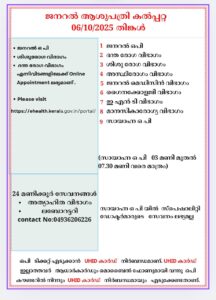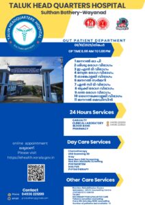ബത്തേരി, മാനന്തവാടി, കൽപ്പറ്റ, വൈത്തിരി, കോഴിക്കോട് ആശുപത്രികളിലെ ഇന്നത്തെ ( 06.10.2025 – തിങ്കൾ ) പ്രധാന ഒ.പി വിവരങ്ങൾ