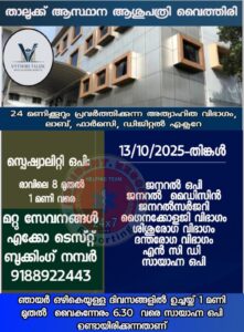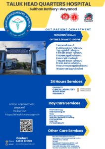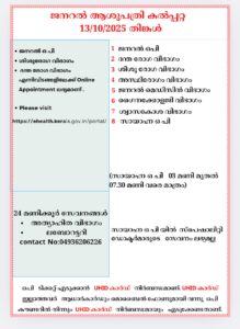 ബത്തേരി, മാനന്തവാടി, കൽപ്പറ്റ, വൈത്തിരി, കോഴിക്കോട് ആശുപത്രികളിലെ ഇന്നത്തെ ( 13.10.2025 – തിങ്കൾ ) പ്രധാന ഒ.പി വിവരങ്ങൾ