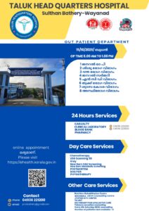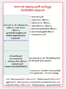ബത്തേരി, മാനന്തവാടി, കൽപ്പറ്റ, വൈത്തിരി, കോഴിക്കോട് ആശുപത്രികളിലെ ഇന്നത്തെ ( 15.10.2025 – ബുധൻ ) പ്രധാന ഒ.പി വിവരങ്ങൾ