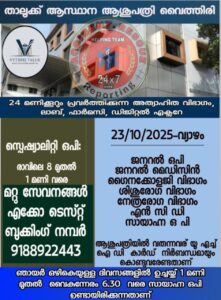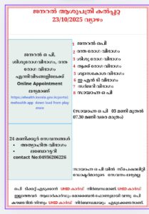 ബത്തേരി, മാനന്തവാടി, കൽപ്പറ്റ, വൈത്തിരി, കോഴിക്കോട് ആശുപത്രികളിലെ ഇന്നത്തെ ( 23.10.2025 – വ്യാഴം ) പ്രധാന ഒ.പി വിവരങ്ങൾ