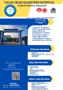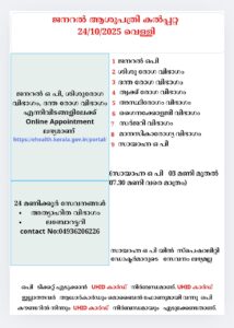 ബത്തേരി, മാനന്തവാടി, കൽപ്പറ്റ, വൈത്തിരി, കോഴിക്കോട് ആശുപത്രികളിലെ ഇന്നത്തെ ( 24.10.2025 – വെള്ളി ) പ്രധാന ഒ.പി വിവരങ്ങൾ
