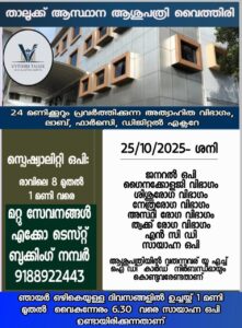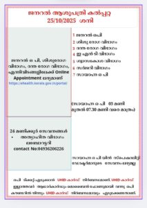 ബത്തേരി, മാനന്തവാടി, കൽപ്പറ്റ, വൈത്തിരി, കോഴിക്കോട് ആശുപത്രികളിലെ ഇന്നത്തെ ( 25.10.2025 – ശനി ) പ്രധാന ഒ.പി വിവരങ്ങൾ