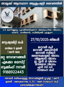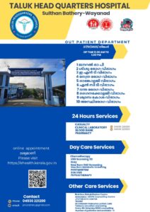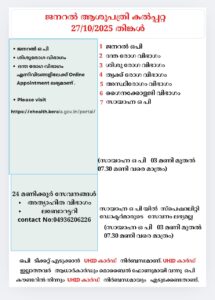 ബത്തേരി, മാനന്തവാടി, കൽപ്പറ്റ, വൈത്തിരി, കോഴിക്കോട് ആശുപത്രികളിലെ ഇന്നത്തെ ( 27.10.2025 – തിങ്കൾ ) പ്രധാന ഒ.പി വിവരങ്ങൾ