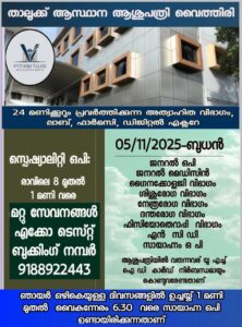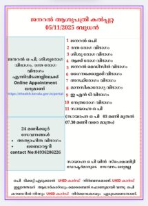 ബത്തേരി, മാനന്തവാടി, കൽപ്പറ്റ, വൈത്തിരി, കോഴിക്കോട് ആശുപത്രികളിലെ ഇന്നത്തെ ( 05.11.2025 – ബുധൻ ) പ്രധാന ഒ.പി വിവരങ്ങൾ
