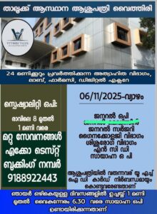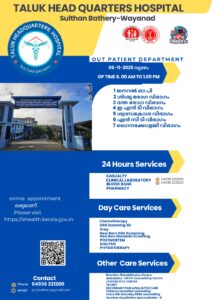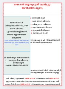 ബത്തേരി, മാനന്തവാടി, കൽപ്പറ്റ, വൈത്തിരി, കോഴിക്കോട് ആശുപത്രികളിലെ ഇന്നത്തെ ( 06.11.2025 – വ്യാഴം ) പ്രധാന ഒ.പി വിവരങ്ങൾ