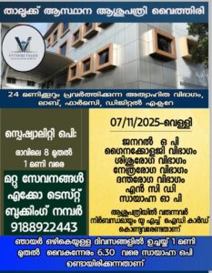 ബത്തേരി, മാനന്തവാടി, കൽപ്പറ്റ, വൈത്തിരി, കോഴിക്കോട് ആശുപത്രികളിലെ ഇന്നത്തെ ( 07.11.2025 – വെള്ളി ) പ്രധാന ഒ.പി വിവരങ്ങൾ