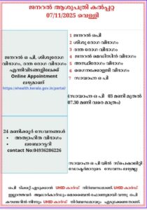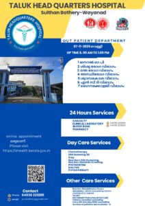 ബത്തേരി, മാനന്തവാടി, കൽപ്പറ്റ, വൈത്തിരി, കോഴിക്കോട് ആശുപത്രികളിലെ ഇന്നത്തെ ( 07.11.2025 – വെള്ളി ) പ്രധാന ഒ.പി വിവരങ്ങൾ