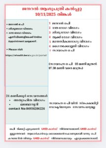 ബത്തേരി, മാനന്തവാടി, കൽപ്പറ്റ, വൈത്തിരി, കോഴിക്കോട് ആശുപത്രികളിലെ ഇന്നത്തെ ( 10.11.2025 – തിങ്കൾ ) പ്രധാന ഒ.പി വിവരങ്ങൾ