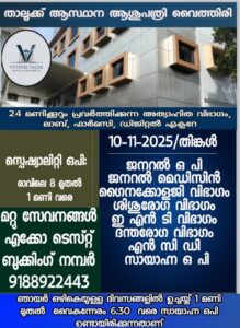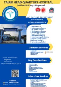 ബത്തേരി, മാനന്തവാടി, കൽപ്പറ്റ, വൈത്തിരി, കോഴിക്കോട് ആശുപത്രികളിലെ ഇന്നത്തെ ( 10.11.2025 – തിങ്കൾ ) പ്രധാന ഒ.പി വിവരങ്ങൾ