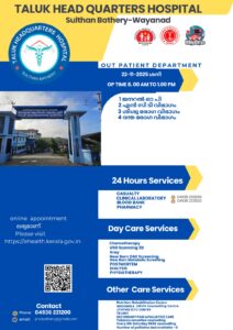 ബത്തേരി, മാനന്തവാടി, കൽപ്പറ്റ, വൈത്തിരി, കോഴിക്കോട് ആശുപത്രികളിലെ ഇന്നത്തെ ( 22.11.2025 – ശനി ) പ്രധാന ഒ.പി വിവരങ്ങൾ