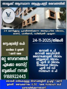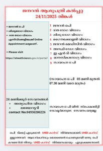 ബത്തേരി, മാനന്തവാടി, കൽപ്പറ്റ, വൈത്തിരി, കോഴിക്കോട് ആശുപത്രികളിലെ ഇന്നത്തെ ( 24.11.2025 – തിങ്കൾ ) പ്രധാന ഒ.പി വിവരങ്ങൾ