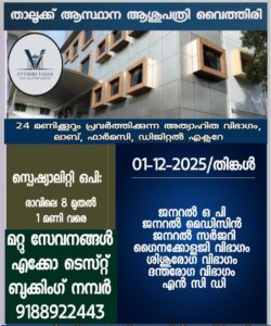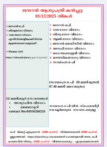 ബത്തേരി, മാനന്തവാടി, കൽപ്പറ്റ, വൈത്തിരി, കോഴിക്കോട് ആശുപത്രികളിലെ ഇന്നത്തെ ( 01.12.2025 – ശനി ) പ്രധാന ഒ.പി വിവരങ്ങൾ