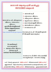 ബത്തേരി, മാനന്തവാടി, കൽപ്പറ്റ, വൈത്തിരി, കോഴിക്കോട് ആശുപത്രികളിലെ ഇന്നത്തെ ( 03.12.2025 – ബുധൻ ) പ്രധാന ഒ.പി വിവരങ്ങൾ
