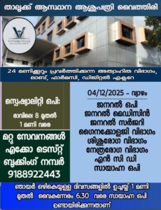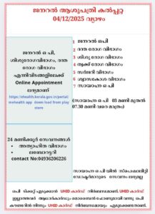 ബത്തേരി, മാനന്തവാടി, കൽപ്പറ്റ, വൈത്തിരി, കോഴിക്കോട് ആശുപത്രികളിലെ ഇന്നത്തെ ( 04.12.2025 – വ്യാഴം ) പ്രധാന ഒ.പി വിവരങ്ങൾ