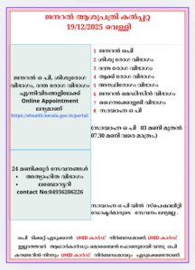 ബത്തേരി, മാനന്തവാടി, കൽപ്പറ്റ, വൈത്തിരി, കോഴിക്കോട് ആശുപത്രികളിലെ ഇന്നത്തെ ( 19.12.2025 – വെള്ളി ) പ്രധാന ഒ.പി വിവരങ്ങൾ
