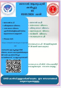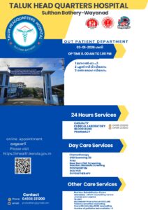 ബത്തേരി, മാനന്തവാടി, കൽപ്പറ്റ, വൈത്തിരി, കോഴിക്കോട് ആശുപത്രികളിലെ ഇന്നത്തെ ( 03.01.2026 – വെള്ളി ) പ്രധാന ഒ.പി വിവരങ്ങൾ