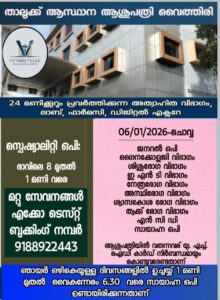 ബത്തേരി, മാനന്തവാടി, കൽപ്പറ്റ, വൈത്തിരി, കോഴിക്കോട് ആശുപത്രികളിലെ ഇന്നത്തെ ( 06.01.2026 – ചൊവ്വ ) പ്രധാന ഒ.പി വിവരങ്ങൾ