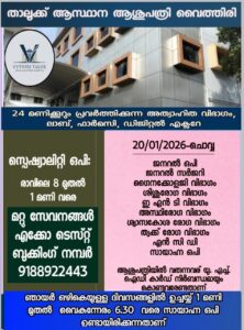 ബത്തേരി, മാനന്തവാടി, കൽപ്പറ്റ, വൈത്തിരി, കോഴിക്കോട് ആശുപത്രികളിലെ ഇന്നത്തെ ( 20.01.2026 – ചൊവ്വ ) പ്രധാന ഒ.പി വിവരങ്ങൾ