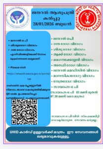 ബത്തേരി, മാനന്തവാടി, കൽപ്പറ്റ, വൈത്തിരി, കോഴിക്കോട് ആശുപത്രികളിലെ ഇന്നത്തെ ( 28.01.2026 – ബുധൻ ) പ്രധാന ഒ.പി വിവരങ്ങൾ