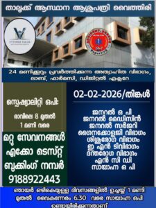 ബത്തേരി, മാനന്തവാടി, കൽപ്പറ്റ, വൈത്തിരി, കോഴിക്കോട് ആശുപത്രികളിലെ ഇന്നത്തെ ( 02.02.2026 – തിങ്കൾ ) പ്രധാന ഒ.പി വിവരങ്ങൾ