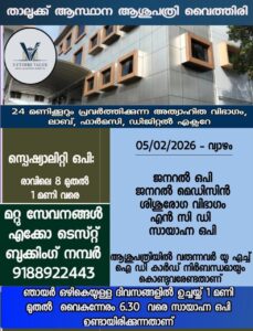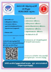 ബത്തേരി, മാനന്തവാടി, കൽപ്പറ്റ, വൈത്തിരി, കോഴിക്കോട് ആശുപത്രികളിലെ ഇന്നത്തെ ( 05.02.2026 – വ്യാഴം ) പ്രധാന ഒ.പി വിവരങ്ങൾ