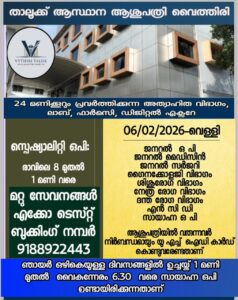 ബത്തേരി, മാനന്തവാടി, കൽപ്പറ്റ, വൈത്തിരി, കോഴിക്കോട് ആശുപത്രികളിലെ ഇന്നത്തെ ( 06.02.2026 – വെള്ളി ) പ്രധാന ഒ.പി വിവരങ്ങൾ