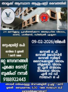 ബത്തേരി, മാനന്തവാടി, കൽപ്പറ്റ, വൈത്തിരി, കോഴിക്കോട് ആശുപത്രികളിലെ ഇന്നത്തെ ( 09.02.2026 – തിങ്കൾ ) പ്രധാന ഒ.പി വിവരങ്ങൾ