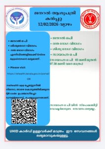 ബത്തേരി, മാനന്തവാടി, കൽപ്പറ്റ, വൈത്തിരി, കോഴിക്കോട് ആശുപത്രികളിലെ ഇന്നത്തെ ( 12.02.2026 – വ്യാഴം ) പ്രധാന ഒ.പി വിവരങ്ങൾ