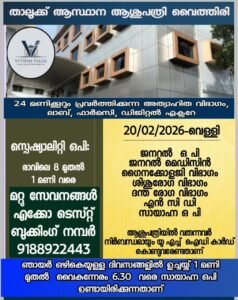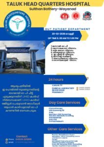ബത്തേരി, മാനന്തവാടി, കൽപ്പറ്റ, വൈത്തിരി, കോഴിക്കോട് ആശുപത്രികളിലെ ഇന്നത്തെ ( 20.02.2026 – വെള്ളി ) പ്രധാന ഒ.പി വിവരങ്ങൾ