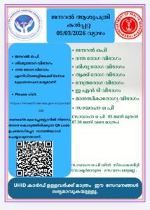 ബത്തേരി, മാനന്തവാടി, കൽപ്പറ്റ, വൈത്തിരി, കോഴിക്കോട് ആശുപത്രികളിലെ ഇന്നത്തെ ( 05.03.2026 – വ്യാഴം ) പ്രധാന ഒ.പി വിവരങ്ങൾ