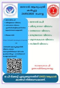 ബത്തേരി, മാനന്തവാടി, കൽപ്പറ്റ, വൈത്തിരി, കോഴിക്കോട് ആശുപത്രികളിലെ ഇന്നത്തെ ( 24.03.2026 – ചൊവ്വ ) പ്രധാന ഒ.പി വിവരങ്ങൾ