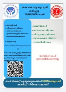 ബത്തേരി, മാനന്തവാടി, കൽപ്പറ്റ, വൈത്തിരി, കോഴിക്കോട് ആശുപത്രികളിലെ ഇന്നത്തെ ( 28.03.2026 – ശനി ) പ്രധാന ഒ.പി വിവരങ്ങൾ