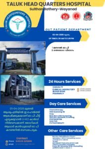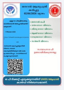 ബത്തേരി, മാനന്തവാടി, കൽപ്പറ്റ, വൈത്തിരി, കോഴിക്കോട് ആശുപത്രികളിലെ ഇന്നത്തെ ( 02.04.2026 – വ്യാഴം ) പ്രധാന ഒ.പി വിവരങ്ങൾ