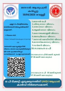 ബത്തേരി, മാനന്തവാടി, കൽപ്പറ്റ, വൈത്തിരി, കോഴിക്കോട് ആശുപത്രികളിലെ ഇന്നത്തെ ( 10.04.2026 – വെള്ളി ) പ്രധാന ഒ.പി വിവരങ്ങൾ