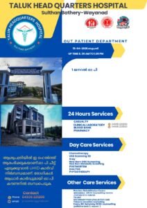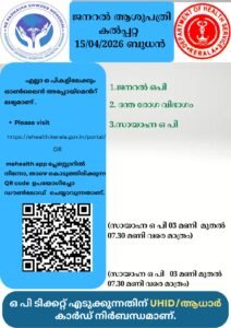 ബത്തേരി, മാനന്തവാടി, കൽപ്പറ്റ, വൈത്തിരി, കോഴിക്കോട് ആശുപത്രികളിലെ ഇന്നത്തെ ( 15.04.2026 – ബുധൻ ) പ്രധാന ഒ.പി വിവരങ്ങൾ