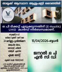 *വയനാട് ഗവണ്മെന്റ് മെഡിക്കൽ കോളേജ് ഹോസ്പിറ്റലിൽ ഒ.പി ടിക്കറ്റ് എടക്കാൻ UHID കാർഡ് നിർബന്ധമാണ്*