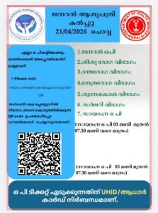 ബത്തേരി, മാനന്തവാടി, കൽപ്പറ്റ, വൈത്തിരി, കോഴിക്കോട് ആശുപത്രികളിലെ ഇന്നത്തെ ( 21.04.2026 – ചൊവ്വ ) പ്രധാന ഒ.പി വിവരങ്ങൾ