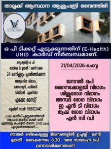*വയനാട് ഗവണ്മെന്റ് മെഡിക്കൽ കോളേജ് ഹോസ്പിറ്റലിൽ ഒ.പി ടിക്കറ്റ് എടക്കാൻ UHID കാർഡ് നിർബന്ധമാണ്*