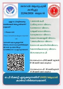 ബത്തേരി, മാനന്തവാടി, കൽപ്പറ്റ, വൈത്തിരി, കോഴിക്കോട് ആശുപത്രികളിലെ ഇന്നത്തെ ( 22.04.2026 – ബുധൻ ) പ്രധാന ഒ.പി വിവരങ്ങൾ