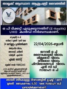 *വയനാട് ഗവണ്മെന്റ് മെഡിക്കൽ കോളേജ് ഹോസ്പിറ്റലിൽ ഒ.പി ടിക്കറ്റ് എടക്കാൻ UHID കാർഡ് നിർബന്ധമാണ്*