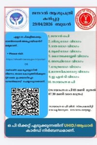 ബത്തേരി, മാനന്തവാടി, കൽപ്പറ്റ, വൈത്തിരി, കോഴിക്കോട് ആശുപത്രികളിലെ ഇന്നത്തെ ( 29.04.2026 – ബുധൻ ) പ്രധാന ഒ.പി വിവരങ്ങൾ