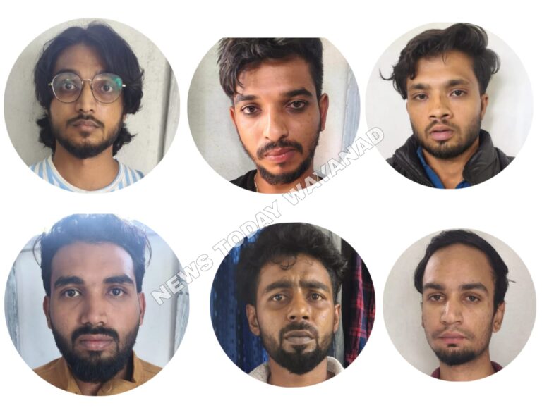 തിരുനെല്ലി : ബാംഗ്ലൂർ സ്വദേശികളായ അർബാസ്(37), ഉമർ ഫാറൂഖ് (28), മുഹമ്മദ് സാബി (28), ഇസ്മയിൽ (27), ഉംറസ് ഖാൻ (27), സൈദ് സിദ്ധിഖ് (27)...